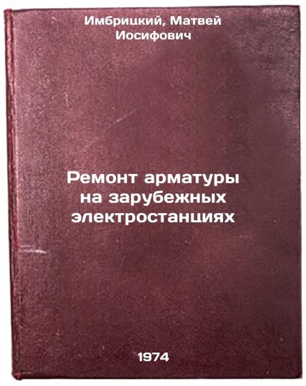 In Russian. Imbritsky, Matvey Iosifovich. Repair of valves at foreign power plants. Moscow: Informenergo, 1974. Remont armatury na zarubezhnykh elektrostantsiyakh. In Russian /Repair of valves at foreign power plants. All images are for identification of editions only. Several books of the same edition may be available. Please feel free to request photos of available books. SKU7125229