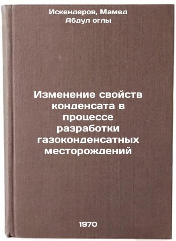 In Russian. Iskenderov, Mamed Abdul ogly. Change of condensate properties in the process of development of gas condensate fields. Moscow: Subsoil, 1970. Izmenenie svoystv kondensata v protsesse razrabotki gazokondensatnykh mestorozhdeniy. In Russian /Changes in condensate properties during the development of gas condensate fields . All images are for identification of editions only. Several books of the same edition may be available. Please feel free to request photos of available books. SKU7129275