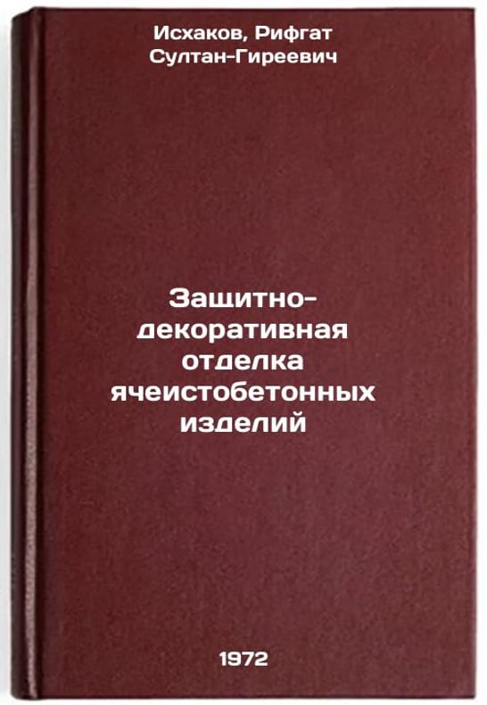 In Russian. Ishakov, Rifgat Sultan-Gireevich. Protective and decorative finishing of cellular concrete products. Moscow: Centre for Scientific and Engineering Information on City Building and Architecture, 1972. Zashchitno-dekorativnaya otdelka yacheistobetonnykh izdeliy. In Russian/Protective and decorative finishing of cellular concrete products. All images are for identification of editions only. Several books of the same edition may be available. Please feel free to request photos of available books. SKU7132275