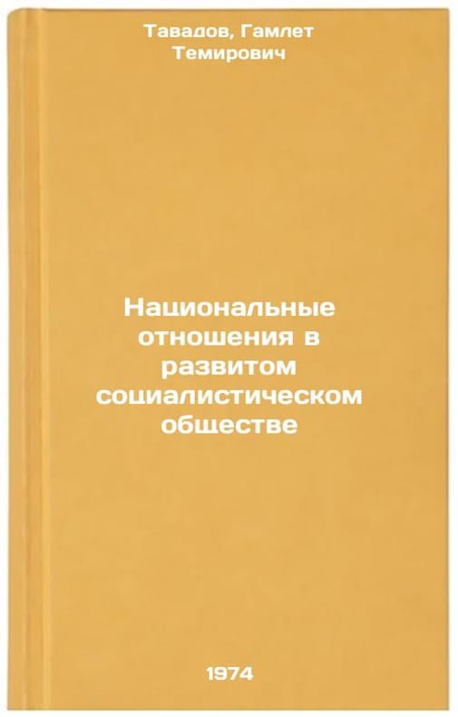 In Russian. Tavadov, Hamlet Temirovich. National Relations in a Developed Socialist Society. Moscow: The Znanie of the RSFSR, 1974. Natsional'nye otnosheniya v razvitom sotsialisticheskom obshchestve. In Russian /National Relations in a Developed Socialist Society. All images are for identification of editions only. Several books of the same edition may be available. Please feel free to request photos of available books. SKU7132935