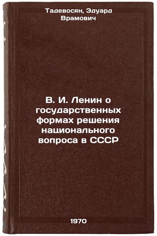 In Russian. Tadevosyan, Eduard Vramovich. V. I. Lenin on state forms of resolving the national question in the USSR. Moscow: Moscow University Publishing House, 1970. V. I. Lenin o gosudarstvennykh formakh resheniya natsional'nogo voprosa v SSSR. In Russian /V. I. Lenin on state forms of solving the national question in the USSR . All images are for identification of editions only. Several books of the same edition may be available. Please feel free to request photos of available books. SKU7133112