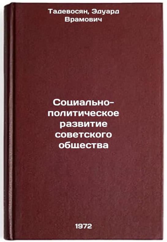 In Russian. Tadevosyan, Eduard Vramovich. Social and Political Development of Soviet Society. Moscow: Znanie, 1972. Sotsialno-politicheskoe razvitie sovetskogo obshchestva. In Russian/Socio-political development of Soviet society. All images are for identification of editions only. Several books of the same edition may be available. Please feel free to request photos of available books. SKU7133116