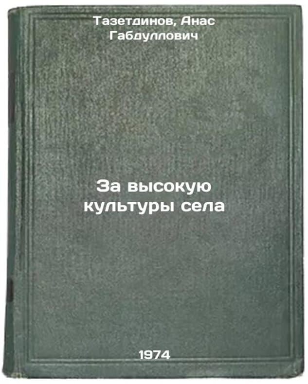 In Russian. Tazetdinov, Anas Gabdullovich. For high culture of the village. Kazan: Tatar edition, 1974. All images are for identification of editions only. Several books of the same edition may be available. Please feel free to request photos of available books. SKU7133229