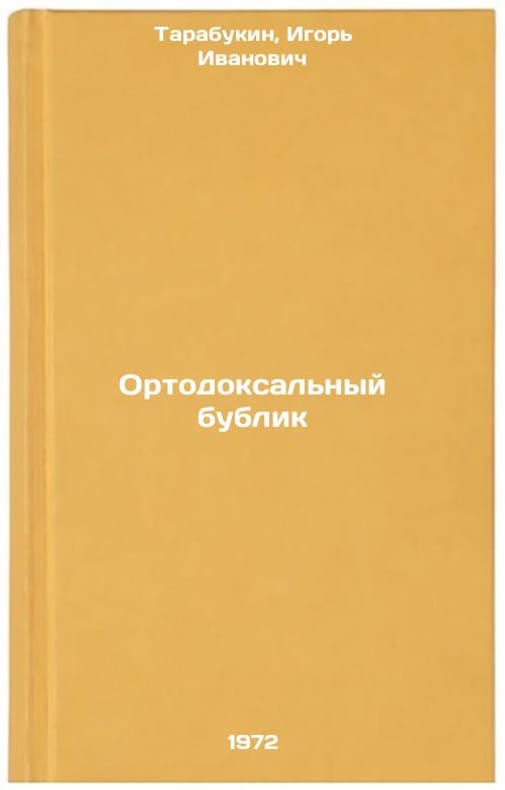 In Russian. Tarabukin, Igor Ivanovich. Orthodox bagel. Sverdlovsk: Middle-Ural book, 1972. All images are for identification of editions only. Several books of the same edition may be available. Please feel free to request photos of available books. SKU7133913