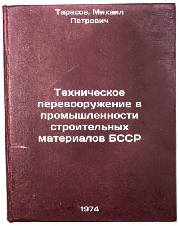 In Russian. Tarasov, Mikhail Petrovich. Technical rearmament in the construction materials industry of the BSSR. Minsk: BelNIINTI, 1974. Tekhnicheskoe perevooruzhenie v promyshlennosti stroitel'nykh materialov BSSR. In Russian /Technical re-equipment in the BSSR building materials industry. All images are for identification of editions only. Several books of the same edition may be available. Please feel free to request photos of available books. SKU7134907