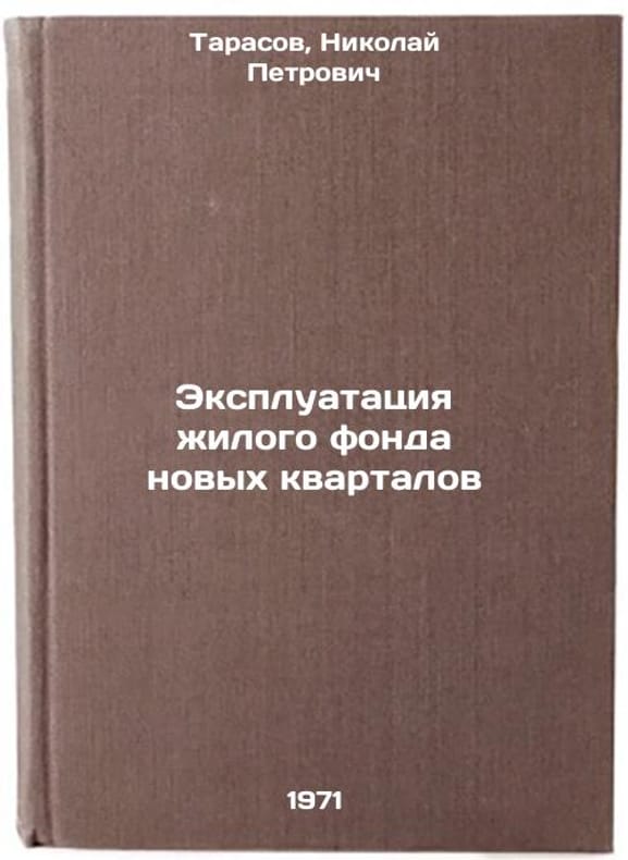 In Russian. Tarasov, Nikolai Petrovich. Exploitation of the Housing Stock of New Neighborhoods. Moscow: Moscow Worker, 1971. Ekspluatatsiya zhilogo fonda novykh kvartalov. In Russian /Exploitation of the housing stock of new neighbourhoods . All images are for identification of editions only. Several books of the same edition may be available. Please feel free to request photos of available books. SKU7134926