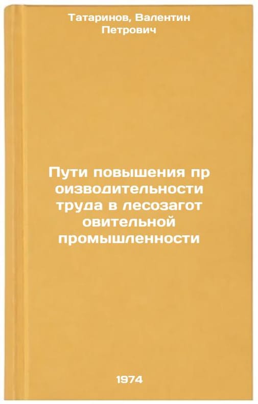 In Russian. Tatarinov, Valentin Petrovich. Ways to Increase Labor Productivity in the Logging Industry. Moscow: Forest Industry, 1974. Puti povysheniya proizvoditel'nosti truda v lesozagotovitel'noy promyshlennosti. In Russian /Ways to increase productivity in the logging industry. All images are for identification of editions only. Several books of the same edition may be available. Please feel free to request photos of available books. SKU7135443