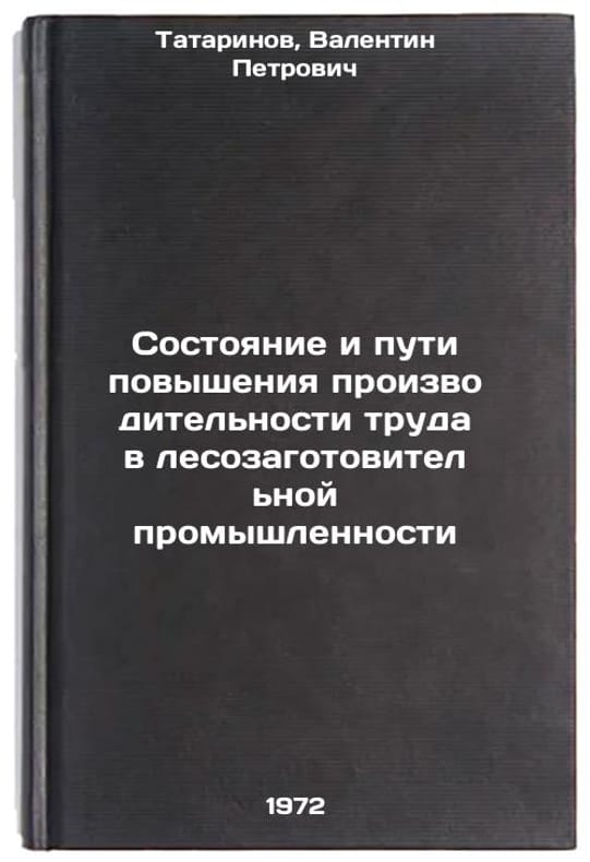 In Russian. Tatarinov, Valentin Petrovich. Condition and Ways to Increase Labor Productivity in the Logging Industry. Moscow: 1972. Sostoyanie i puti povysheniya proizvoditelnosti truda v lesozagotovitelnoy promyshlennosti. In Russian/Status and Ways to Improve Productivity in the Logging Industry. All images are for identification of editions only. Several books of the same edition may be available. Please feel free to request photos of available books. SKU7135445
