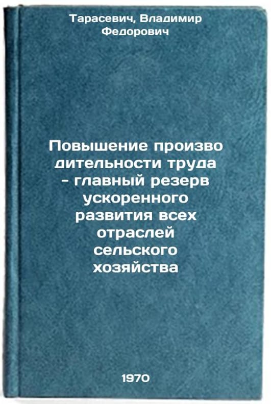In Russian. Tarasevich, Vladimir Fedorovich. Increasing labor productivity is the main reserve for accelerating the development of all branches of agriculture. Minsk: 1970. Povyshenie proizvoditel'nosti truda - glavnyy rezerv uskorennogo razvitiya vsekh otrasley sel'skogo khozyaystva. In Russian /Increasing productivity is the key to accelerating the development of all sectors of agriculture . All images are for identification of editions only. Several books of the same edition may be available. Please feel free to request photos of available books. SKU7136385