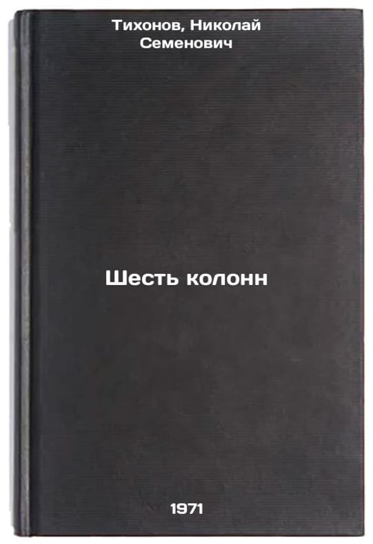 Short description: In Russian. Tikhonov, Nikolai Semenovich. Six Columns. Moscow: Soviet writer, 1970. The image is provided for reference only. It may reflect condition of one of the available copies or only help in identifying the edition. Please feel free to contact us for a detailed description of the copies available. SKU7142084