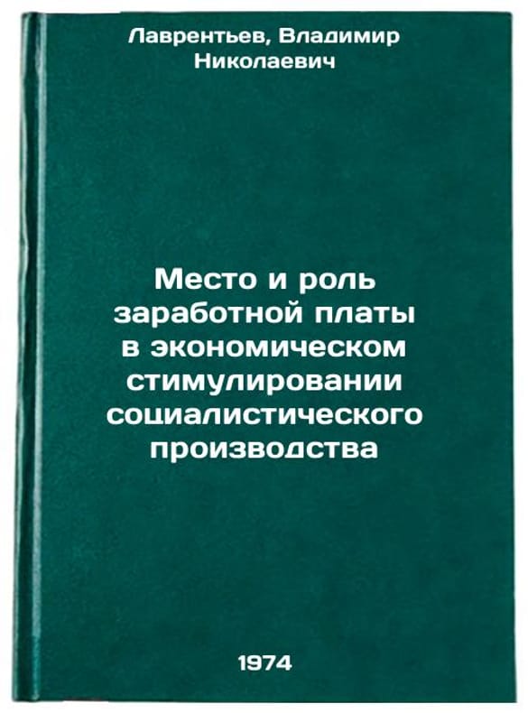 In Russian. Lavrentiev, Vladimir Nikolaevich. The Place and Role of Wages in the Economic Stimulation of Socialist Production. Leningrad: 1974. Mesto i rol' zarabotnoy platy v ekonomicheskom stimulirovanii sotsialisticheskogo proizvodstva. In Russian /The Place and Role of Wages in the Economic Stimulus of Socialist Production. All images are for identification of editions only. Several books of the same edition may be available. Please feel free to request photos of available books. SKU7146957