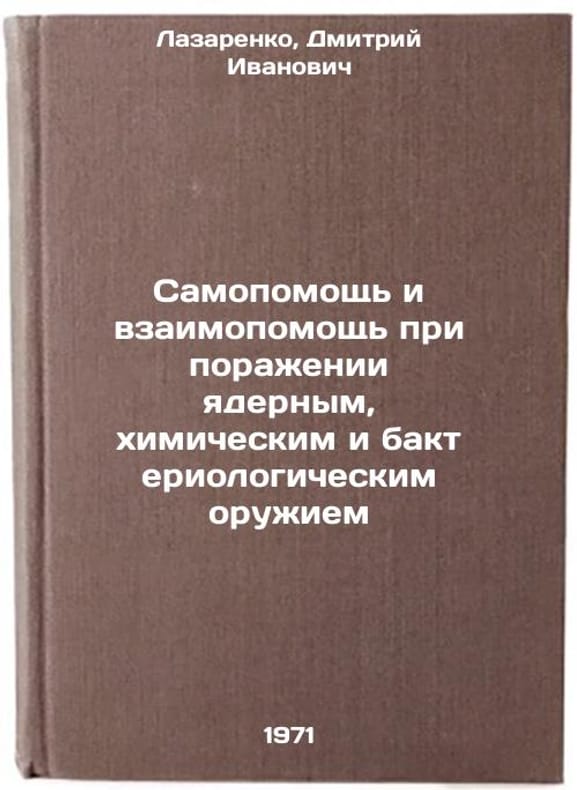 In Russian. Lazarenko, Dmitry Ivanovich. Self-Help and Mutual Assistance in the Case of Nuclear, Chemical, and Bacteriological Weapons. Moscow: Medicine, 1970. Samopomoshch' i vzaimopomoshch' pri porazhenii yadernym, khimicheskim i bakteriologicheskim oruzhiem. In Russian /Self-help and mutual assistance against nuclear, chemical and bacteriological weapons . All images are for identification of editions only. Several books of the same edition may be available. Please feel free to request photos of available books. SKU7147651