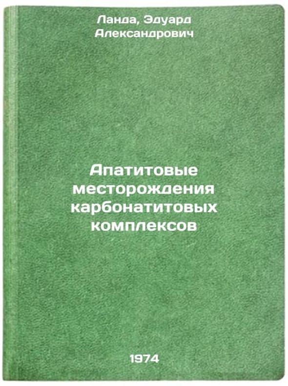 In Russian. Landa, Eduard Alexandrovich. Apatite deposits of carbonatite complexes. Moscow: Nedra, 1974. Apatitovye mestorozhdeniya karbonatitovykh kompleksov. In Russian /Apatite deposits of carbonatite complexes. All images are for identification of editions only. Several books of the same edition may be available. Please feel free to request photos of available books. SKU7147988