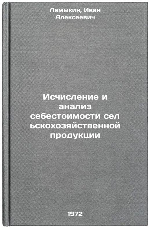 In Russian. Lamykin, Ivan Alekseevich. Calculation and analysis of the prime cost of agricultural products. Moscow: Economics, 1972. Ischislenie i analiz sebestoimosti selskokhozyaystvennoy produktsii. In Russian/Calculation and analysis of agricultural production costs. All images are for identification of editions only. Several books of the same edition may be available. Please feel free to request photos of available books. SKU7148108