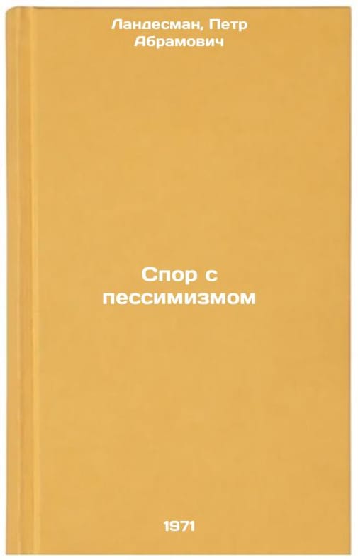 In Russian. Landesman, Peter Abramovich. Dispute with pessimism. Moscow: Politizdat, 1971. All images are for identification of editions only. Several books of the same edition may be available. Please feel free to request photos of available books. SKU7148131