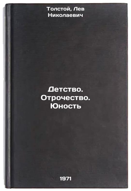 In Russian. Tolstoy, Lev Nikolaevich. Childhood. Adolescence. Youth. Moscow: Art Lit., 1971. All images are for identification of editions only. Several books of the same edition may be available. Please feel free to request photos of available books. SKU7149129