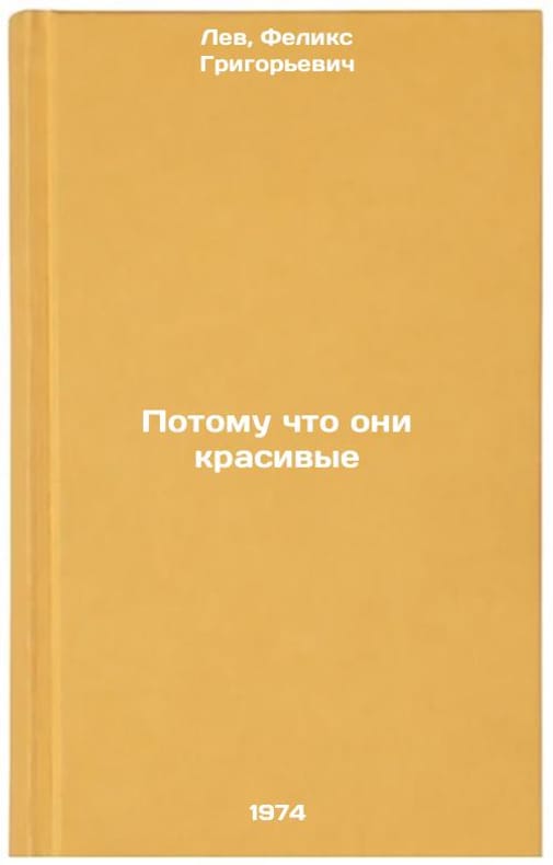 In Russian. Lev, Felix Grigorievich. Because they are beautiful. Moscow: Soviet Russia, 1974. All images are for identification of editions only. Several books of the same edition may be available. Please feel free to request photos of available books. SKU7150453