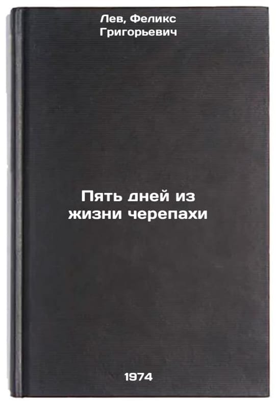 In Russian. Lev, Felix Grigorievich. Five days from the life of the tortoise. Moscow: Det. lit. 1980. All images are for identification of editions only. Several books of the same edition may be available. Please feel free to request photos of available books. SKU996296