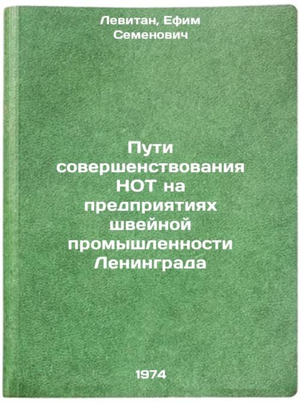 In Russian. Levitan, Efim Semenovich. Ways of improving the NOT at the enterprises of the garment industry of Leningrad. Leningrad: Leningrad Organization of the RSFSR Znanie, LDNTP, 1974. Puti sovershenstvovaniya NOT na predpriyatiyakh shveynoy promyshlennosti Leningrada. In Russian /Ways to improve NOT in the garment industry in Leningrad. All images are for identification of editions only. Several books of the same edition may be available. Please feel free to request photos of available books. SKU7151246