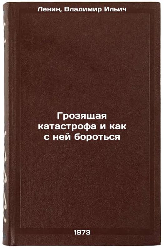In Russian. Lenin, Vladimir Ilyich. A looming catastrophe and how to deal with it. Moscow: Politizdat, 1973. Grozyashchaya katastrofa i kak s ney borotsya. In Russian/A looming catastrophe and how to deal with it. All images are for identification of editions only. Several books of the same edition may be available. Please feel free to request photos of available books. SKU7152071