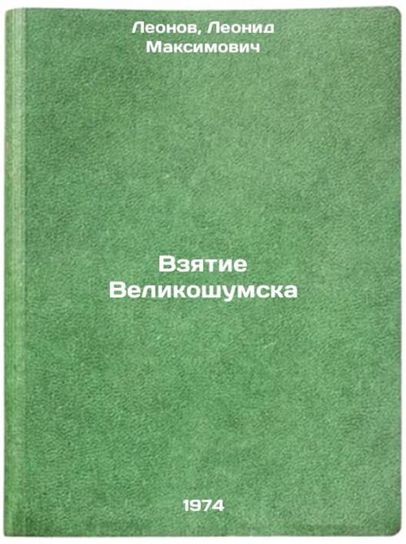 In Russian. Leonov, Leonid Maksimovich. Taking Velikoshumsk. Moscow: Sovremennik, 1974. All images are for identification of editions only. Several books of the same edition may be available. Please feel free to request photos of available books. SKU7154060