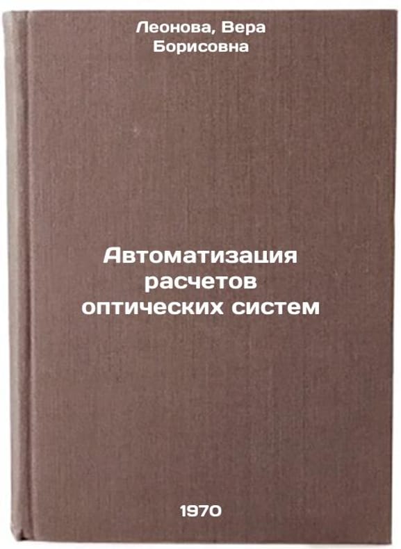 In Russian. Leonova, Vera Borisovna. Automation of calculations of optical systems. Moscow: Machine Building, 1970. Avtomatizatsiya raschetov opticheskikh sistem. In Russian /Automation of calculations for optical systems . All images are for identification of editions only. Several books of the same edition may be available. Please feel free to request photos of available books. SKU7154121