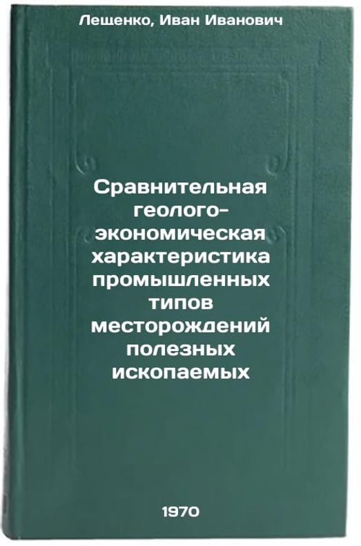 In Russian. Leshchenko, Ivan Ivanovich. Comparative geological and economic characteristics of industrial types of mineral deposits. Moscow: 1970. Sravnitel'naya geologo-ekonomicheskaya kharakteristika promyshlennykh tipov mestorozhdeniy poleznykh iskopaemykh. In Russian /Comparative geological and economic characteristics of industrial types of mineral deposits . All images are for identification of editions only. Several books of the same edition may be available. Please feel free to request photos of available books. SKU7154633