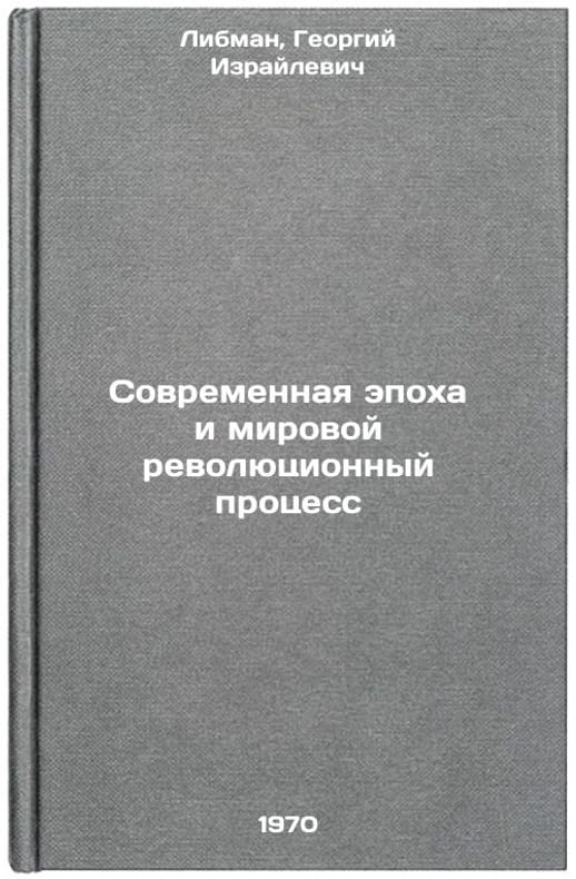 In Russian. Libman, Georgy Izrailevich. The Modern Era and the World Revolutionary Process. Moscow: Higher School, 1970. Sovremennaya epokha i mirovoy revolyutsionnyy protsess. In Russian /The Modern Era and the World Revolutionary Process . All images are for identification of editions only. Several books of the same edition may be available. Please feel free to request photos of available books. SKU7155383