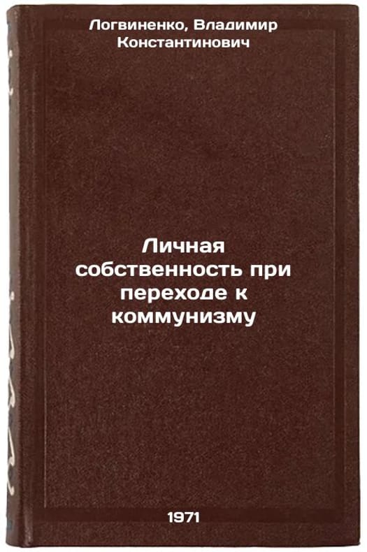 In Russian. Logvinenko, Vladimir Konstantinovich. Personal Property in the Transition to Communism. Kyiv: 1971. Lichnaya sobstvennost' pri perekhode k kommunizmu. In Russian /Personal Property in the Transition to Communism . All images are for identification of editions only. Several books of the same edition may be available. Please feel free to request photos of available books. SKU7157644