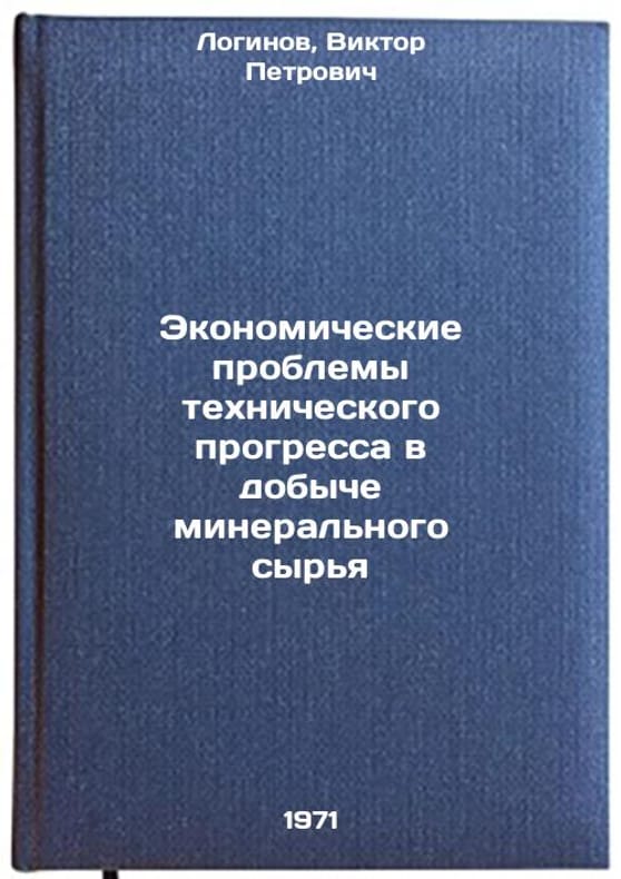 In Russian. Loginov, Viktor Petrovich. Economic Problems of Technological Progress in Mineral Extraction. Moscow: Science, 1971. Ekonomicheskie problemy tekhnicheskogo progressa v dobyche mineral'nogo syr'ya. In Russian /Economic Problems of Technological Progress in Mineral Extraction . All images are for identification of editions only. Several books of the same edition may be available. Please feel free to request photos of available books. SKU7157900