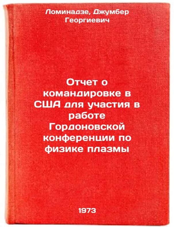 In Russian. Lominadze, Jumber Georgievich. Report on his trip to the United States to participate in the Gordon Conference on Plasma Physics. Moscow: 1973. Otchet o komandirovke v SShA dlya uchastiya v rabote Gordonovskoy konferentsii po fizike plazmy. In Russian/Report on a mission to the United States to attend the Gordon Conference on Plasma Physics. All images are for identification of editions only. Several books of the same edition may be available. Please feel free to request photos of available books. SKU7158744