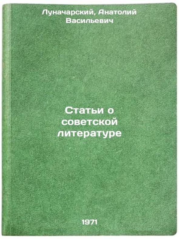 In Russian. Lunacharsky, Anatoly Vasilievich. Articles on Soviet Literature. Moscow: Enlightenment, 1971. All images are for identification of editions only. Several books of the same edition may be available. Please feel free to request photos of available books. SKU7160175
