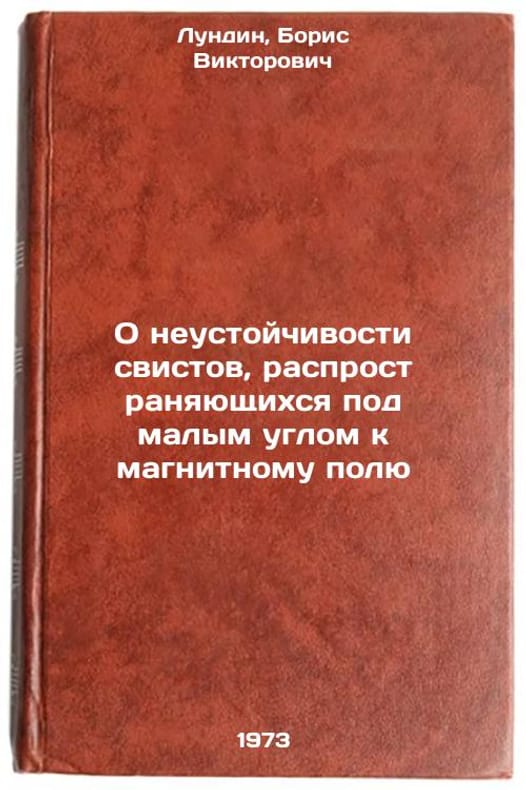 In Russian. Lundin, Boris Viktorovich. On the instability of whistles spreading at a small angle to the magnetic field. Moscow: 1973. O neustoychivosti svistov, rasprostranyayushchikhsya pod malym uglom k magnitnomu polyu. In Russian/On the instability of whistles propagating at a low angle to the magnetic field. All images are for identification of editions only. Several books of the same edition may be available. Please feel free to request photos of available books. SKU7160190