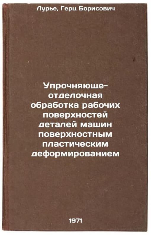 In Russian. Lurie, Herts Borisovich. Strengthening and finishing the working surfaces of machine parts with surface plastic deformation. Moscow: 1971. Uprochnyayushche-otdelochnaya obrabotka rabochikh poverkhnostey detaley mashin poverkhnostnym plasticheskim deformirovaniem. In Russian /Strengthening and finishing the working surfaces of machine parts with surface plastic deformation . All images are for identification of editions only. Several books of the same edition may be available. Please feel free to request photos of available books. SKU7160349