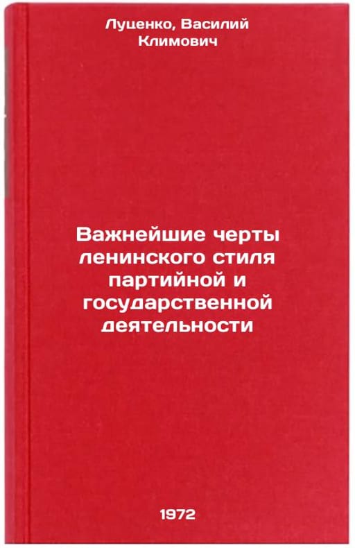 In Russian. Lutsenko, Vasily Klimovich. The most important features of Leninist style of party and state activity. Kyiv: Publishing House of Kyiv, 1972. Vazhneyshie cherty leninskogo stilya partiynoy i gosudarstvennoy deyatelnosti. In Russian/The Highlights of the Leninist Style of Party and State Activities. All images are for identification of editions only. Several books of the same edition may be available. Please feel free to request photos of available books. SKU7160725