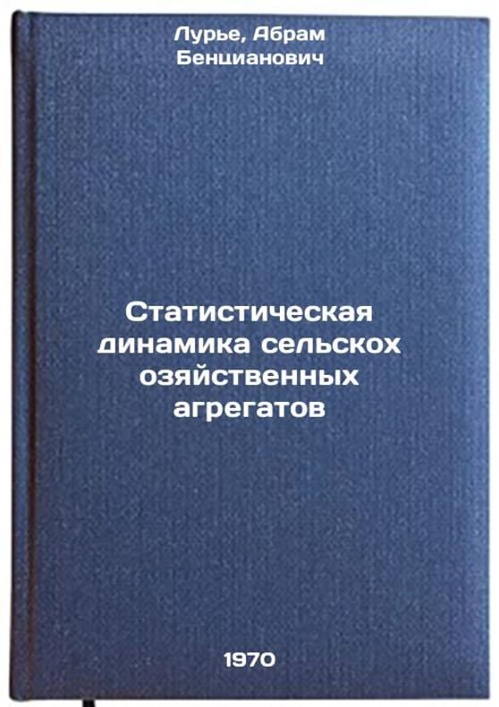 In Russian. Lurie, Abram Benzianovich. Statistical Dynamics of Agricultural Aggregates. Leningrad: Kolos, Leningrad Division, 1970. Statisticheskaya dinamika sel'skokhozyaystvennykh agregatov. In Russian /Statistical Dynamics of Agricultural Aggregates . All images are for identification of editions only. Several books of the same edition may be available. Please feel free to request photos of available books. SKU7160985