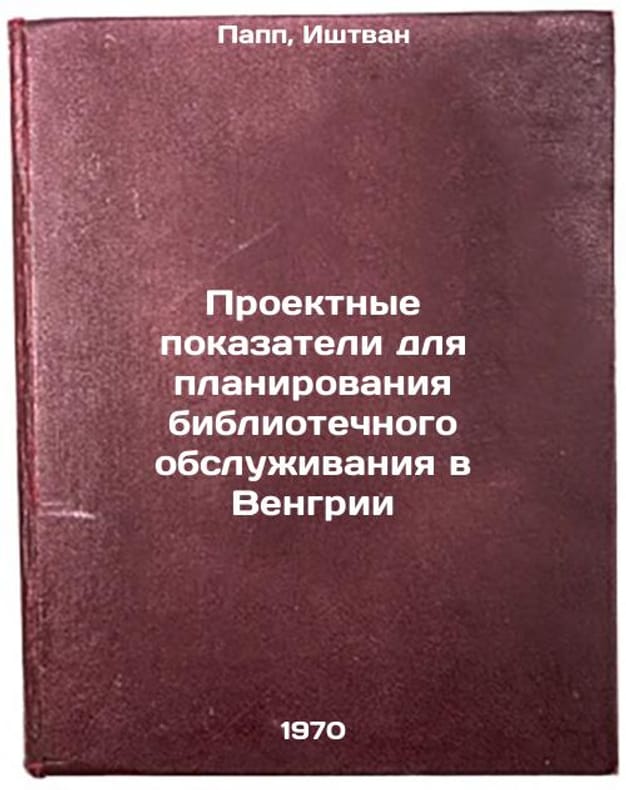 In Russian. Papp, Istvan. Project Indicators for Planning Library Services in Hungary. Moscow: 1970. Proektnye pokazateli dlya planirovaniya bibliotechnogo obsluzhivaniya v Vengrii. In Russian /Project Indicators for Library Planning in Hungary . All images are for identification of editions only. Several books of the same edition may be available. Please feel free to request photos of available books. SKU7313008