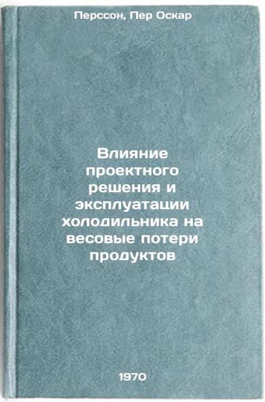 In Russian. Persson, Per Oskar. Impact of refrigerator design and operation on product weight losses. Moscow: 1970. Vliyanie proektnogo resheniya i ekspluatatsii kholodil'nika na vesovye poteri produktov. In Russian /Impact of refrigerator design and operation on product weight losses . All images are for identification of editions only. Several books of the same edition may be available. Please feel free to request photos of available books. SKU7313262