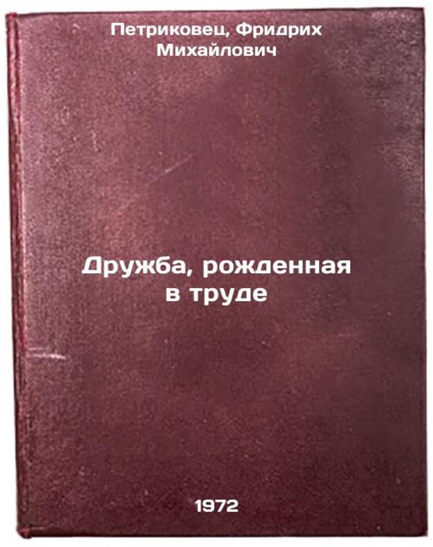 In Russian. Petrikovets, Friedrich Mikhailovich. Friendship born in labor. Alma-Ata: 1972. All images are for identification of editions only. Several books of the same edition may be available. Please feel free to request photos of available books. SKU7313468