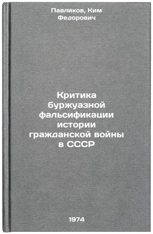 In Russian. Pavlikov, Kim Fedorovich. Criticism of the bourgeois falsification of the history of the USSR Civil War. Moscow: 1974. Kritika burzhuaznoy fal'sifikatsii istorii grazhdanskoy voyny v SSSR. In Russian /Criticism of the bourgeois falsification of the history of the USSR Civil War. All images are for identification of editions only. Several books of the same edition may be available. Please feel free to request photos of available books. SKU7315426