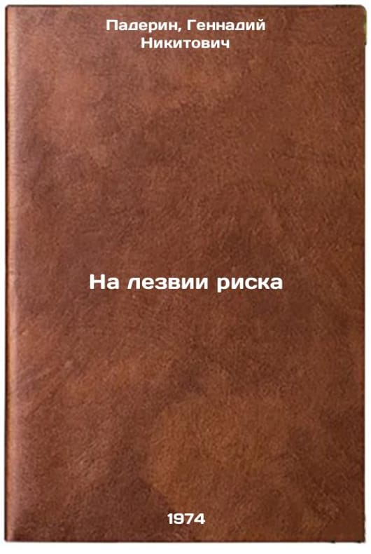 In Russian. Paderin, Gennady Nikitovich. On the Blade of Risk. Novosibirsk: Zap.-Siberian Book Publishing House, 1974. All images are for identification of editions only. Several books of the same edition may be available. Please feel free to request photos of available books. SKU7316219