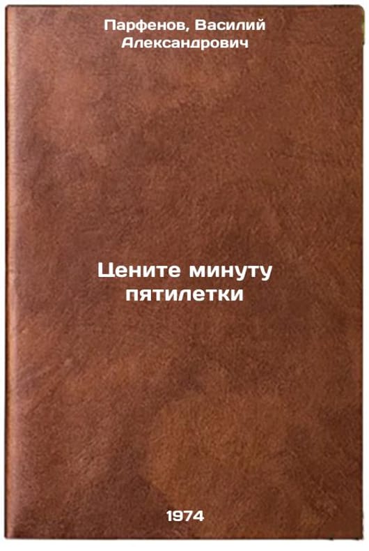In Russian. Parfenov, Vasily Alexandrovich. Value a minute of the five-year plan. Moscow: Znanie, 1974. All images are for identification of editions only. Several books of the same edition may be available. Please feel free to request photos of available books. SKU7318631