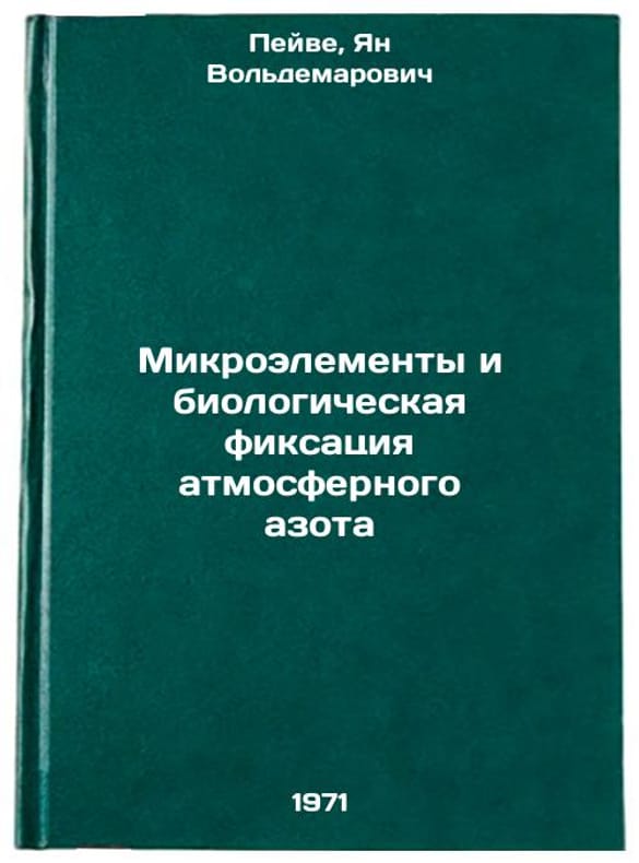 In Russian. Peive, Jan Voldemarovich. Microelements and the biological fixation of atmospheric nitrogen. Moscow: Science, 1971. Mikroelementy i biologicheskaya fiksatsiya atmosfernogo azota. In Russian /Micronutrients and atmospheric nitrogen bio-fixation . All images are for identification of editions only. Several books of the same edition may be available. Please feel free to request photos of available books. SKU7320112