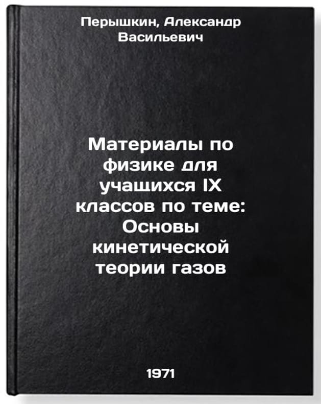 In Russian. Peryshkin, Alexander Vasilievich. Materials on Physics for IX grade students on the topic: Basics of kinetic theory of gases. Moscow: 1971. Materialy po fizike dlya uchashchikhsya IX klassov po teme: Osnovy kineticheskoy teorii gazov. In Russian /Physics materials for ninth grade students on the topic: Basics of the kinetic theory of gases . All images are for identification of editions only. Several books of the same edition may be available. Please feel free to request photos of available books. SKU7322167