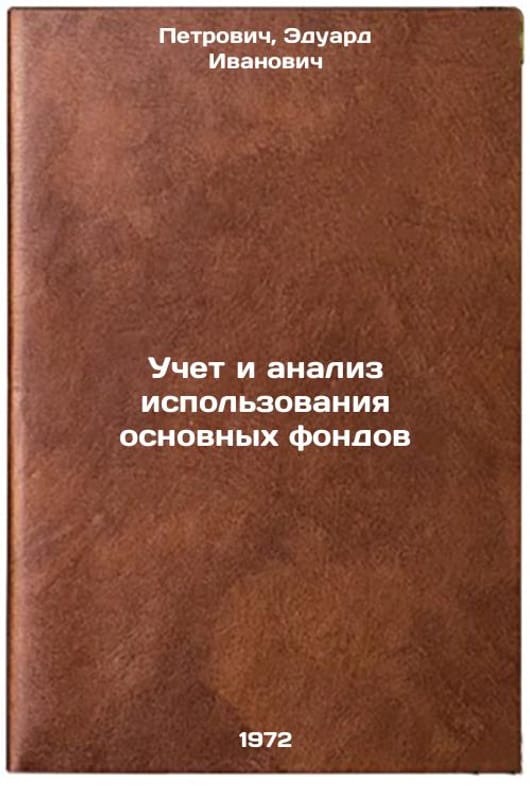In Russian. Petrovich, Eduard Ivanovich. Accounting and analysis of the use of fixed assets. Minsk: High School, 1972. Uchet i analiz ispolzovaniya osnovnykh fondov. In Russian/Fixed asset accounting and analysis. All images are for identification of editions only. Several books of the same edition may be available. Please feel free to request photos of available books. SKU7322728