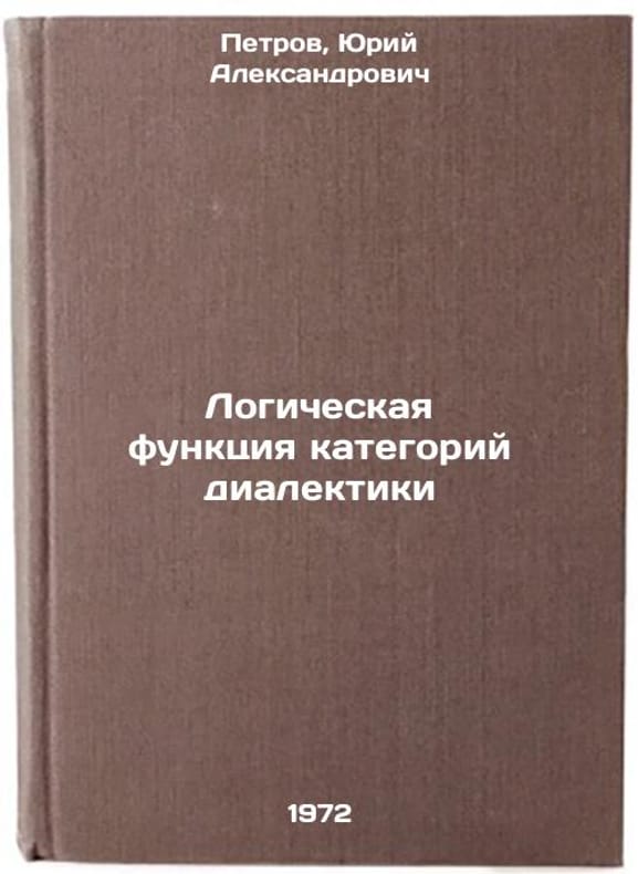 In Russian. Petrov, Yuri Alexandrovich. The logical function of categories of dialectics. Moscow: Higher School, 1972. Logicheskaya funktsiya kategoriy dialektiki. In Russian/The logical function of dialectic categories. All images are for identification of editions only. Several books of the same edition may be available. Please feel free to request photos of available books. SKU7323441