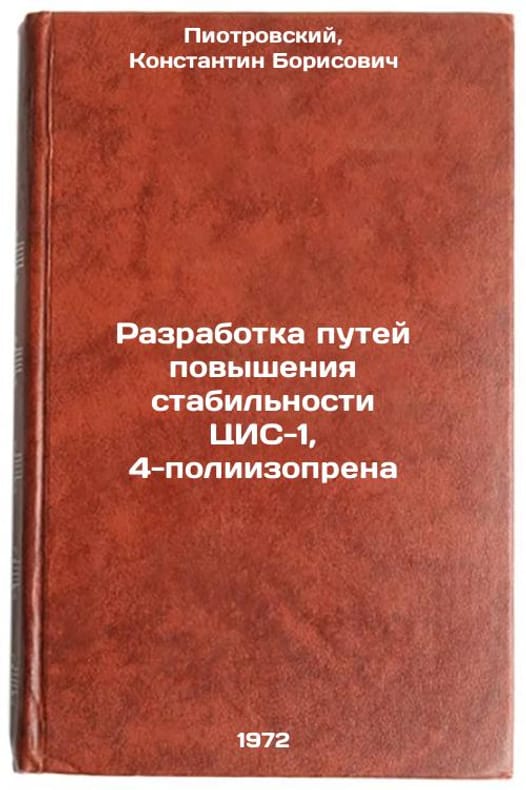 In Russian. Piotrovsky, Konstantin Borisovich. Development of ways to increase the stability of CIS-1, 4-polyisoprene. Moscow: 1972. Razrabotka putey povysheniya stabilnosti TsIS-1, 4-poliizoprena. In Russian/Development of ways to increase the stability of CIS-1, 4-polyisoprene. All images are for identification of editions only. Several books of the same edition may be available. Please feel free to request photos of available books. SKU7324787