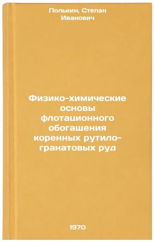 In Russian. Polkin, Stepan Ivanovich. Physical and Chemical Bases of Flotation Concentration of Native Ruthyl-Pomegranate Ores. Moscow: Science, 1970. Fiziko-khimicheskie osnovy flotatsionnogo obogashcheniya korennykh rutilo-granatovykh rud. In Russian /Physical and Chemical Bases for Flotation Concentration of Native Ruthyl-Pomegranate Ores . All images are for identification of editions only. Several books of the same edition may be available. Please feel free to request photos of available books. SKU7328894