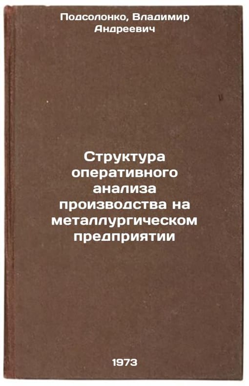 In Russian. Podsolonko, Vladimir Andreevich. Structure of operational analysis of production at a metallurgical enterprise. Donetsk: 1973. Struktura operativnogo analiza proizvodstva na metallurgicheskom predpriyatii. In Russian/Structure of operational analysis of production in a metallurgical plant. All images are for identification of editions only. Several books of the same edition may be available. Please feel free to request photos of available books. SKU7328973