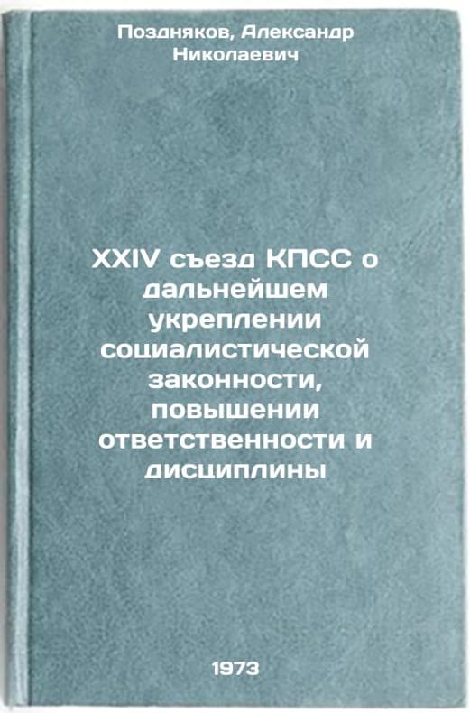 In Russian. Pozdnyakov, Alexander Nikolaevich. XXIV Congress of the CPSU on the further strengthening of socialist legality, responsibility and discipline. Moscow: 1973. XXIV sezd KPSS o dalneyshem ukreplenii sotsialisticheskoy zakonnosti, povyshenii otvetstvennosti i distsipliny. In Russian/24th Congress of the CPSU on the further strengthening of socialist legality, responsibility and discipline. All images are for identification of editions only. Several books of the same edition may be available. Please feel free to request photos of available books. SKU7329370